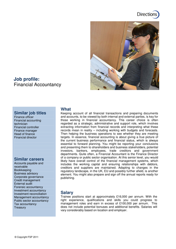 An accounting professional may help prepare budgets and assess operations to improve. Synthesizing and analyzing financial data (like budgets and income statement forecasts) with consideration for the company's goals. Financial analyst job description guide. Financial officer job description template: You will also use general ledgers to create financial statements and engage in mergers and acquisitions accounting decisions.
